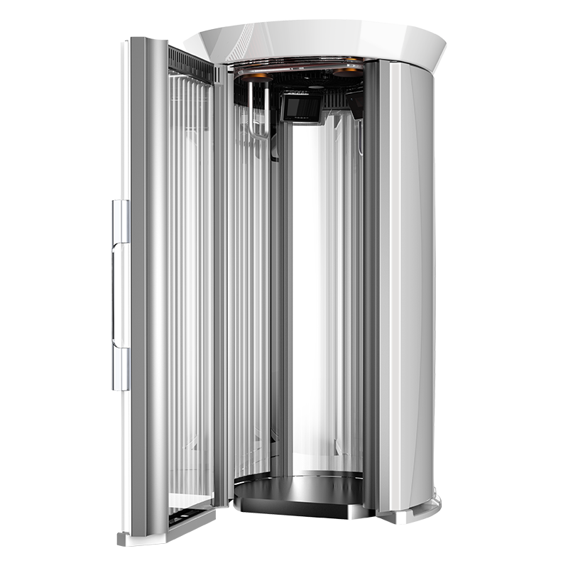The F10R (Rubino) series of health tanning machines originate from the German design, with streamlined appearance, with a sense of technology and high quality. It uses the latest Rubino light source developed by Cosmedico in Germany. Based on the latest research results, this lamp combines perfect tanning results with an intense red spectrum. Its overall balanced spectral distribution enhances direct pigmentation by up to 50%. Cosmedico RUBINO is the perfect blend of UV and red light. Tanning efficient, skin-friendly and producing a pleasant feeling during and after application.